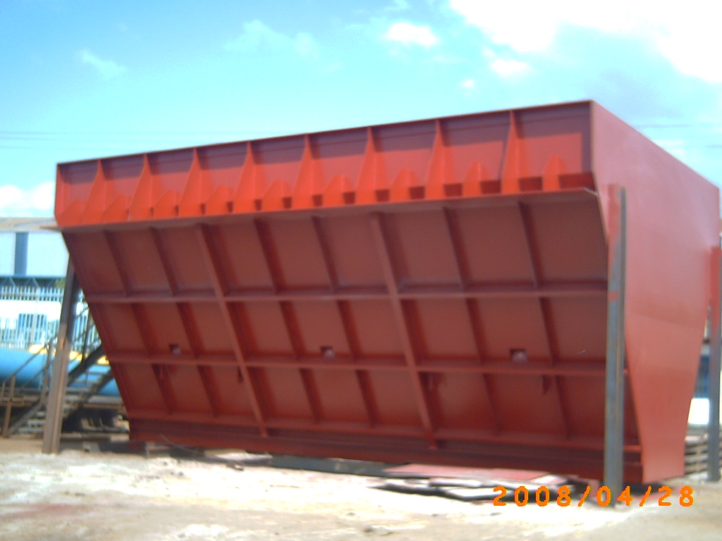 Fabricación, soldadura y pintura de tolvas, cribas y otros equipos con revestimiento anti-abrasivos. Corte con plasma, conformación de chapas y otro.